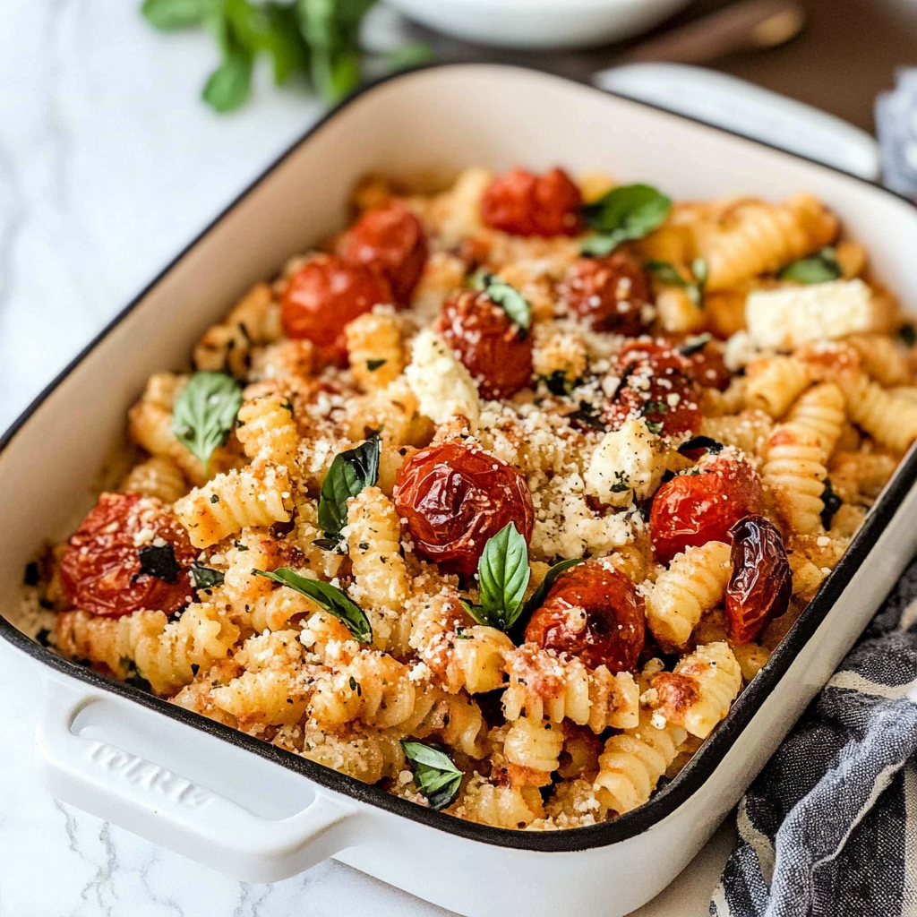 Indulge in this easy baked feta pasta, where creamy feta melts with sweet roasted tomatoes, creating a luscious sauce that perfectly coats your favorite pasta.
