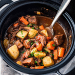 Experience the warmth of a hearty beef stew, filled with tender meat and vibrant veggies, simmered to perfection in your crock pot.