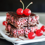 Indulge in these Chocolate Covered Cherry Rice Krispies Treats, a delightful fusion of crunchy cereal, gooey marshmallows, and sweet cherry filling, all enveloped in rich chocolate.