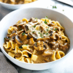 Transfer to plates and drizzle with sauce for the perfect finishing touch. Enjoy every spoonful of this heavenly mushroom stroganoff—you’ve earned it!