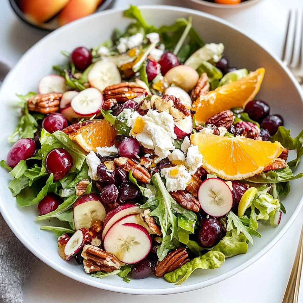 Savor the essence of fall with this vibrant autumn salad, featuring crisp apples, juicy pears, creamy goat cheese, and toasted pecans—perfect for any gathering or cozy meal.