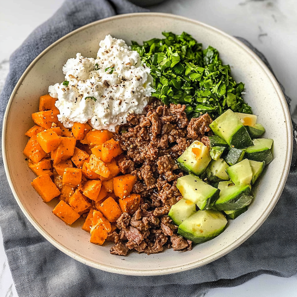 - The creamy cottage cheese, sweet potatoes, and zesty beef create a vibrant dish that’s as fun to make as it is to eat.