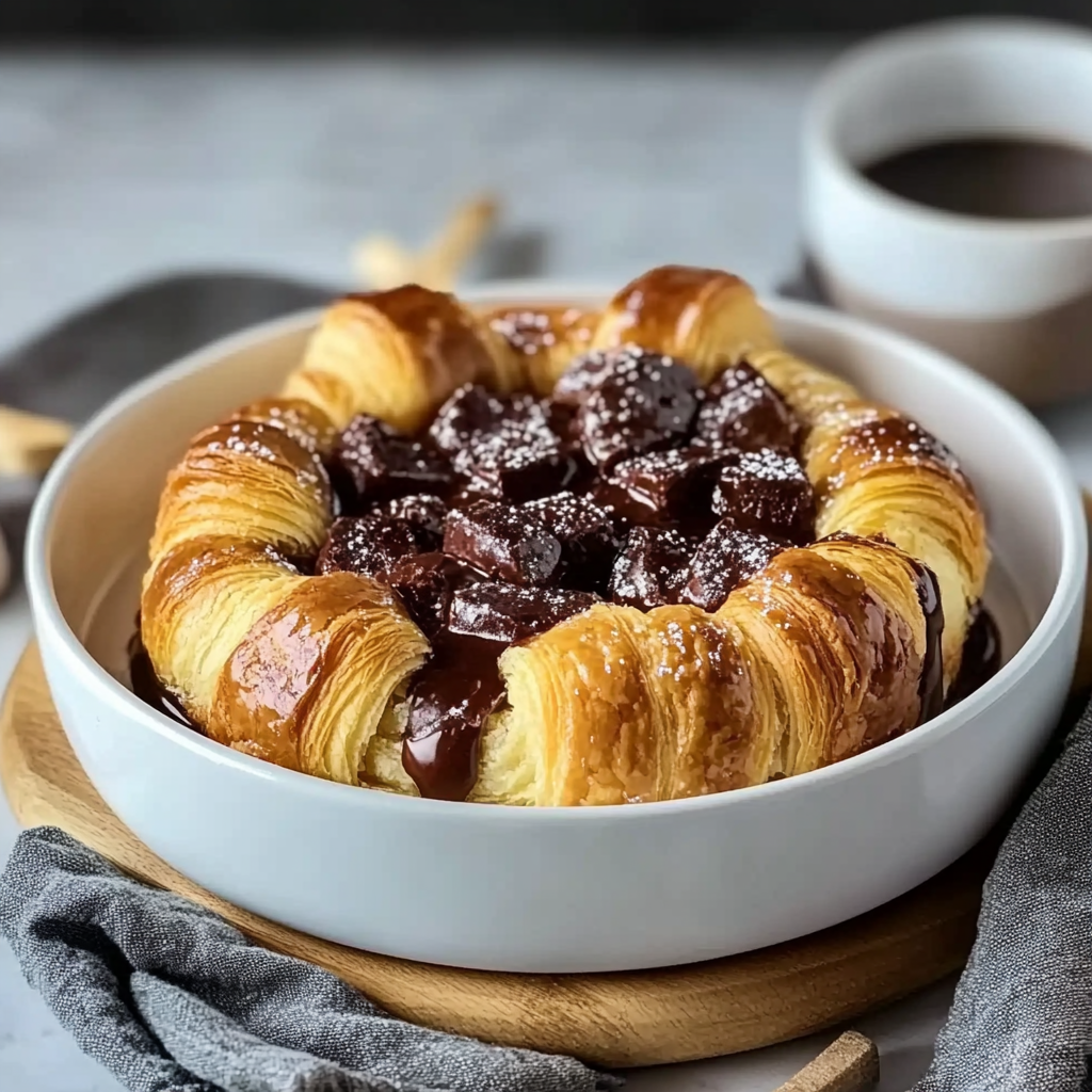 Indulge in a rich Chocolate Croissant Breakfast Bake, featuring buttery croissants and velvety chocolate custard. This easy-to-make dish is perfect for brunch or cozy mornings!