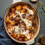 Experience the warmth of creamy sweet potatoes topped with crunchy pecan streusel—a delightful dish perfect for family gatherings or cozy nights in.