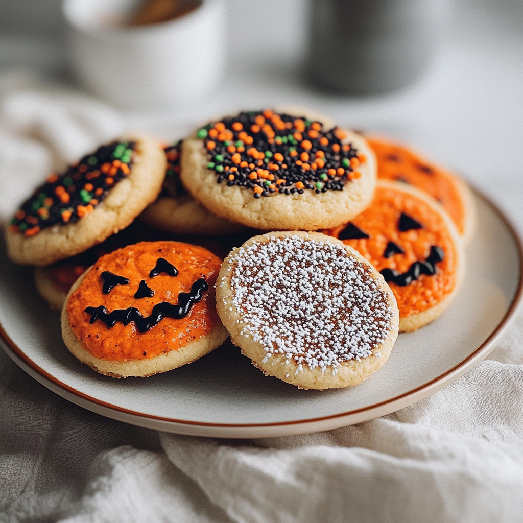 Delight in these festive Halloween cookies, adorned with ghoulish icing and sprinkles, perfect for satisfying your sweet cravings and bringing smiles to every gathering.