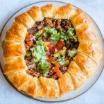 A taco ring with crescent rolls is a delicious and easy-to-make dish that combines the flavors of traditional tacos with the flaky goodness of crescent roll dough. You create a ring shape by overlapping the rolled-out dough and filling it with seasoned ground meat, cheese, and your favorite toppings. It’s perfect for parties or family dinners, serving as a fun and interactive meal.
