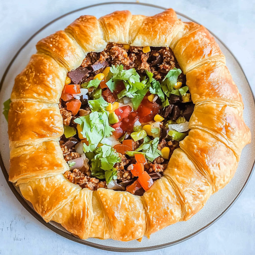 Taco rings with crescent rolls are a fun and delicious twist on traditional tacos, featuring a flaky crust filled with seasoned beef and topped with fresh ingredients.