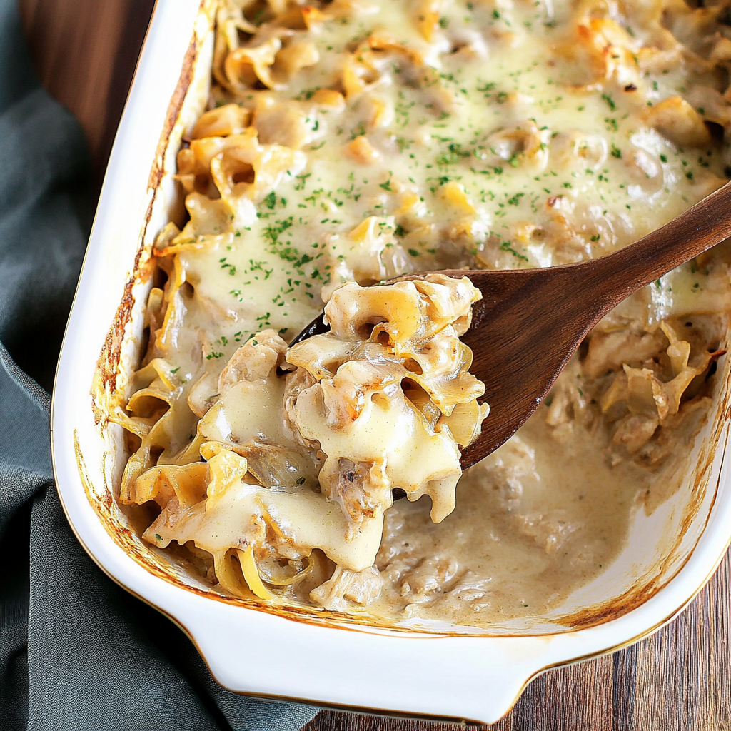 Savor the comforting blend of tender chicken, caramelized onions, and gooey cheese in this heartwarming French Onion Chicken Casserole, perfect for any gathering.