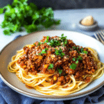 Savor the rich, hearty flavors of this classic spaghetti bolognese, perfect for family dinners or cozy nights in.