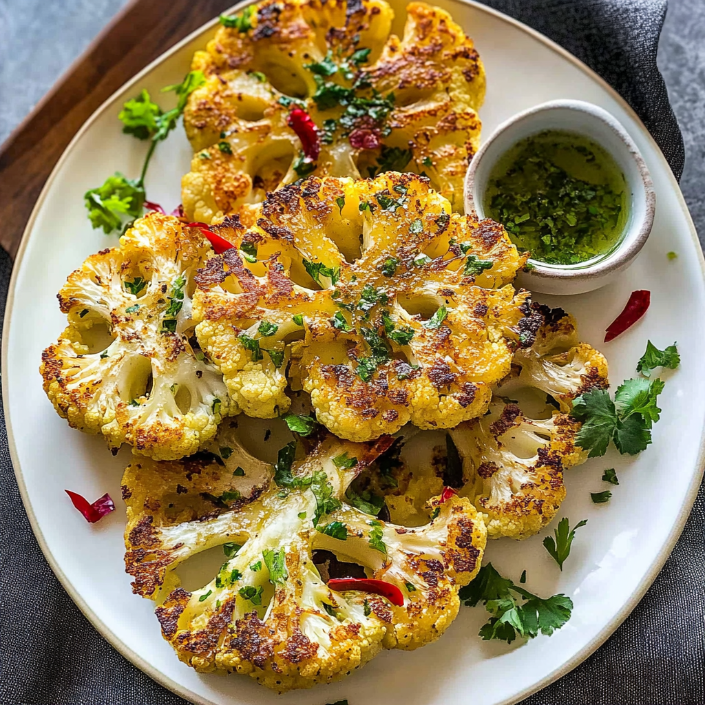 These cauliflower steaks pair wonderfully with various dishes. Try serving them alongside quinoa salad, grilled vegetables, or a vibrant green salad for a complete meal. They also complement proteins like grilled chicken or fish beautifully. The zesty flavors balance well with richer dishes, making them an ideal side option.